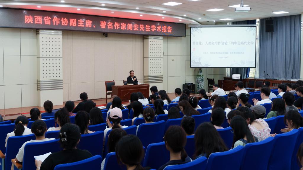 7月4日下午,应学院邀请,陕西省作协副主席、著名作家阎安先生应邀前来我院,在木铎厅作了一场题为《世界化、人类化写作语境下的中国当代文学》的学术报告会。本报告会是我院“陕西文学大讲坛”第17讲。报告会由文学与新闻传播学院副院长、陕西文学研究所所长孙新峰主持。我院中国现当代文学学科教师、2021级、2022级在读研究生、本科生等200多人聆听了报告。