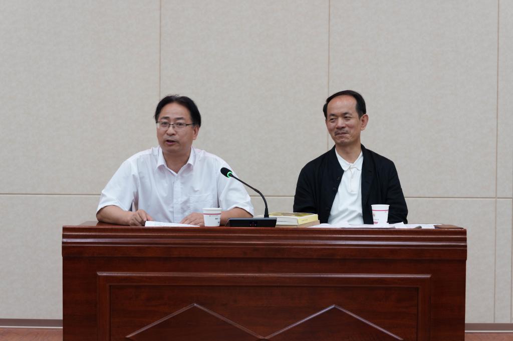 会议伊始,孙新峰对阎安先生做了介绍。阎安,1965年8月生于陕北,现居西安。现任中国作家协会全委会委员,中国作家协会诗歌委员会委员,中国诗歌学会副会长,陕西省作家协会副主席,陕西省诗歌委员会主任,《延河》杂志社社长兼执行主编。系中宣部全国文化名家暨“四个一批”人才项目入选者。1987年开始文学创作,先后出版个人专著《与蜘蛛同在的大地》等15部。诗集《玩具城》《自然主义者的庄园》英文版先后由英国峡谷出版社和美国查克斯出版社出版发行,在全球37个国家上架销售,另有200余首诗歌作品被译成英语、俄语、法语、德语、意大利语、日语、韩语、克罗地亚语,在相关国家30多种专业文学刊物发表推广。诗集《整理石头》获第六届鲁迅文学奖诗歌奖。此外先后荣获“2008年度中国十佳诗人”、2013两岸诗会桂冠诗人奖、首届“白居易诗歌奖•乐天奖”、第二届“屈原诗歌奖”等奖项、荣誉。