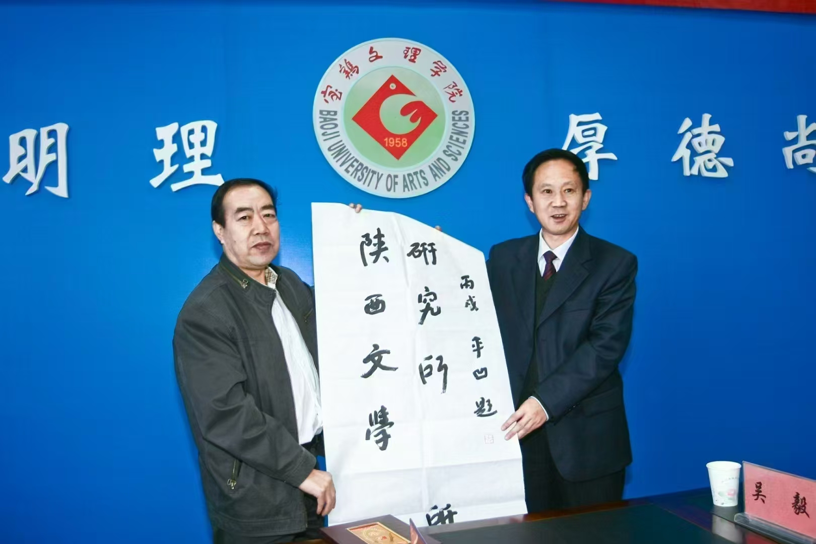 宝鸡文理学院原校党委书记、校长王志刚与著名作家贾平凹共同为陕西文学研究所揭牌